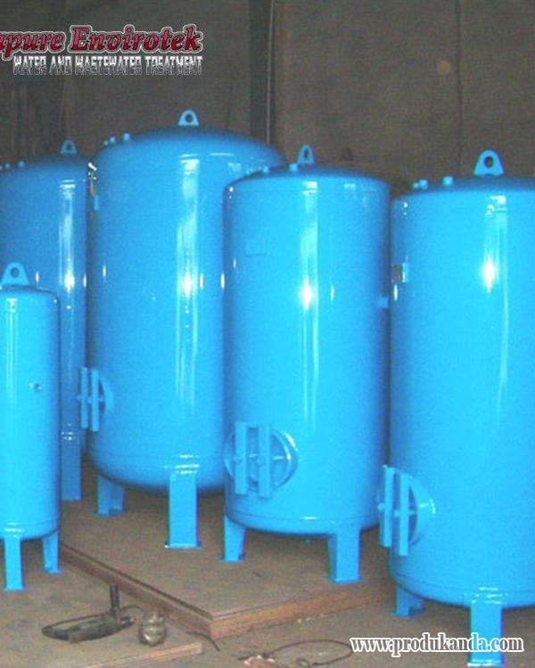Water Pressure Tank adalah tangki untuk menstabilkan tekanan yang berisi penampungan air sementara dan udara. Penggunaan Tangki Pressure ini dapat meringankan kerja pompa dari keadaan start-stop yang terlalu sering dan juga dapat berfungsi sebagai Hydrophore Tank dengan menambahkan beberapa equipment pada tangki nya. Rancangan volume udara dalam Tangki Tekan Air umumnya adalah sebesar 30% dari volume tangki dan sisanya berisi air. PT Tirtapure Envirotek menyediakan Pressure Tank mulai dari kapasitas 500 liter sampai dengan 5000 liter, yang terbuat dari bahan mild steel dan sudah dicat warna merah atau biru pada bagian luarnya.